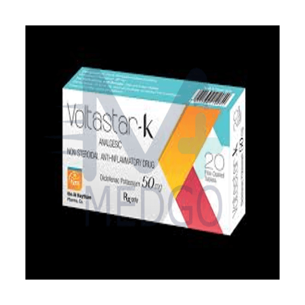 كل مضغوطة ملبسة بالفيلم فولتاستار – ك تحتوي على : ديكلوفيناك الصوديوم 50 ملغ