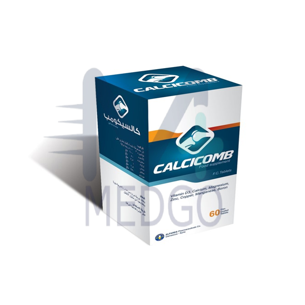 ملغ كالسيوم (ما يعادل 1497.8 ملغ كربونات الكالسيوم.) ,20 ميكروغرام كوليكالسيفيرول (مايعادل 800 وحدة دولية من فيتامين د3). ,50 ملغ مغنزيوم (ما يعادل 82.3 ملغ أُكسيد المغنزيوم.)