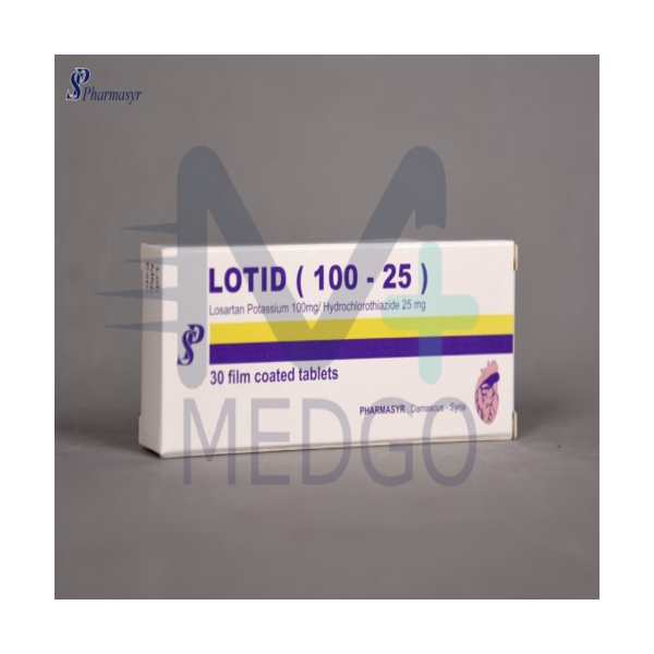 كل مضغوطة تحتوي على: لوزارتان بوتاسيوم 100 ملغ + هيدروكلوروثيازايد 25 ملغ